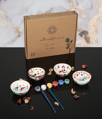 All materials will be provided, including ready-to-use glazed ceramic bowls (4 pieces), colorings, and painting tools. Best of all, no kiln is required, so you can take your finished project home with you.